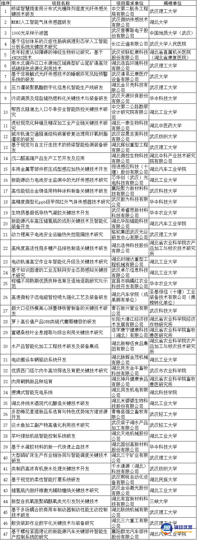 湖北2023年度揭榜制科技項目擬立項47個項目予以公示