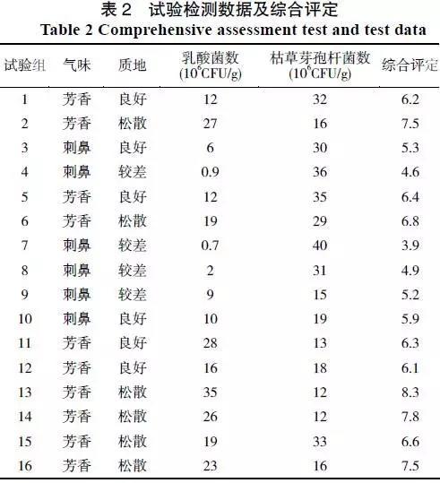 采用最佳操作水平數(shù)據(jù)對進行試驗,以驗證結(jié)果的穩(wěn)定性,通過試驗發(fā)現(xiàn),在發(fā)酵15 d時,飼料具氣味芳香,顆粒松散,乳酸菌活菌數(shù)>4×107CFU/g,枯草芽孢桿菌活菌數(shù)>2×107 CFU/g最終評價值為8.9,優(yōu)于其他試驗組。